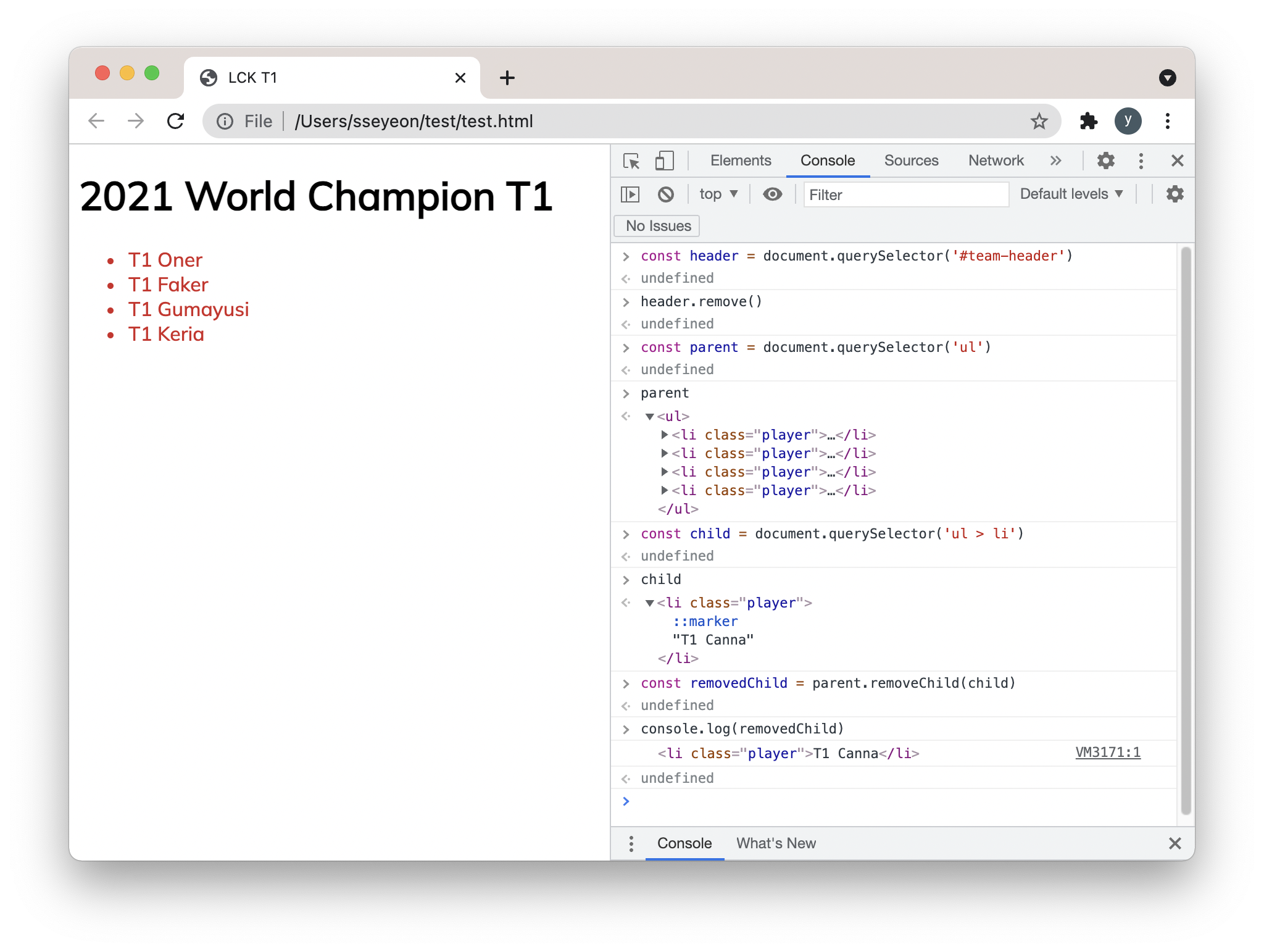 ChildNode.remove() → Node가 속한 트리에서 해당 Node를 제거